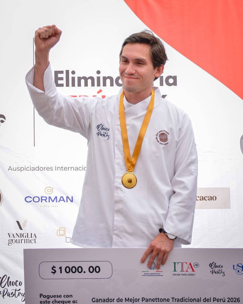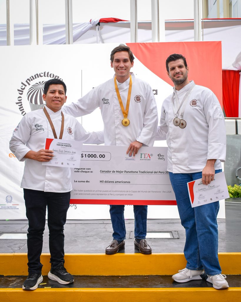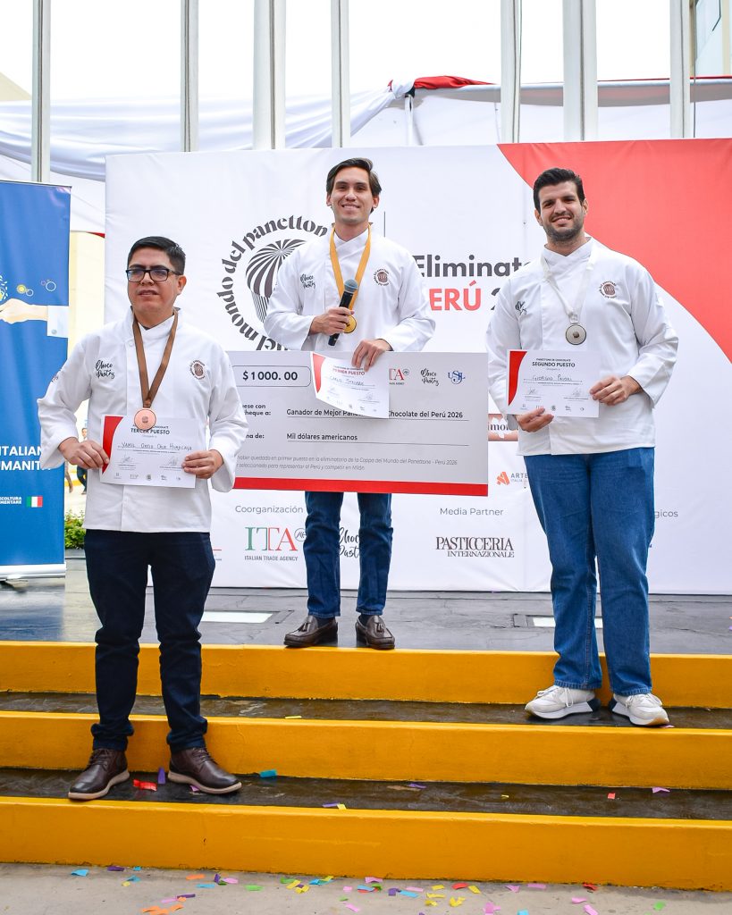 A rappresentare il Perù nella categoria del panettone tradizionale sarà invece Giorgio Priori arrivato secondo, che volerà a Milano per la finale mondiale. La manifestazione si è distinta per l’intensità e il coinvolgimento, anche grazie alla presenza di importanti personalità istituzionali e accademiche. Tra queste, il Maestro Giuseppe Piffaretti ideatore di Coppa del Mondo del Panettone, la decana Sandra Zubieta Decana della Facolta hotelera , turismo y gastronomia de l’Universitá San Ignacio di Loyola – USIL, istituzione accademica di riferimento nel settore gastronomico in Perù che ha ospitato l’evento, la dott.ssa Elisa Polsinelli – Vice Capo Missione e Primo Segretario presso l’Ambasciata d’Italia a Lima – ed Eliana Zappalà, Directora Oficina de Cile Bolivia e Perù di Italia Trade Agency.L’evento è stato organizzato da Chocopastry, sotto la guida del suo presidente Juan Carlos Lopez, e ha visto anche la preziosa partecipazione degli studenti del Collegio Antonio Raimondi, a testimonianza del forte legame tra formazione, cultura e tradizione italiana nel mondo.
